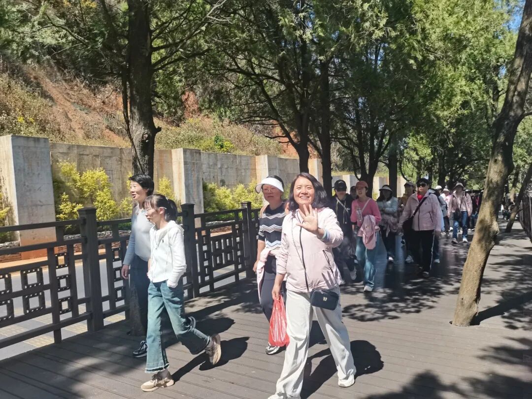 下午两点,教师们卸下了工作的疲惫,选择绿色低碳的出行方式来到西山茶马花街集合,简单的合影后大家开始了徒步登山活动。大家三三两两、有说有笑地朝目的地“玉兰园”行进,享受着森林氧吧带来的愉悦心情,生活和工作的压力尽情释放、怡然轻松。