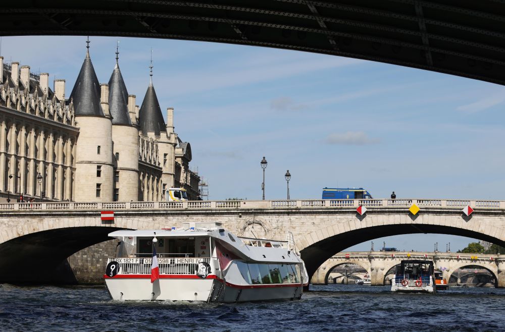 (2023年7月17日,巴黎奥组委在法国塞纳河上进行了一场奥运会开幕式迷你彩排。新华社记者 高静 摄)