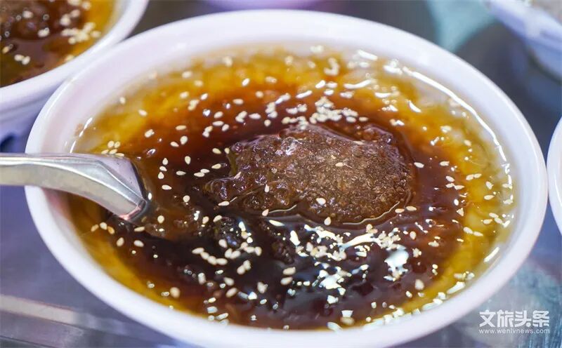 木瓜水是玉溪人记忆中最熟悉的味道之一。捣碎的木瓜粉,搭配上冰镇红糖水、玫瑰花酱和熟芝麻粒,舀入玻璃杯或碗内,晶莹剔透,诱人极了。木瓜水老少皆宜,既解渴又解暑,喝到嘴里冰凉滑爽的感觉让人暑意顿消,幸福感十足。