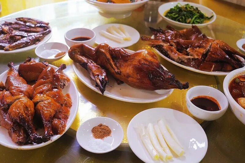 红塔区的传统名吃“青松毛烤鸭”,近似于北方烤鸭,但又有自己的特点。因为用青松针叶晒干扭成的“草团”为燃料烧成,因此被叫作“青松毛烧鸭”。青松针叶具有清香味,用它烤制的烤鸭香味扑鼻,熟透度适中,颜色金黄美观。食用时蘸上甜酸酱汁口感更佳,也可以拌葱而食,又是另一种风味。