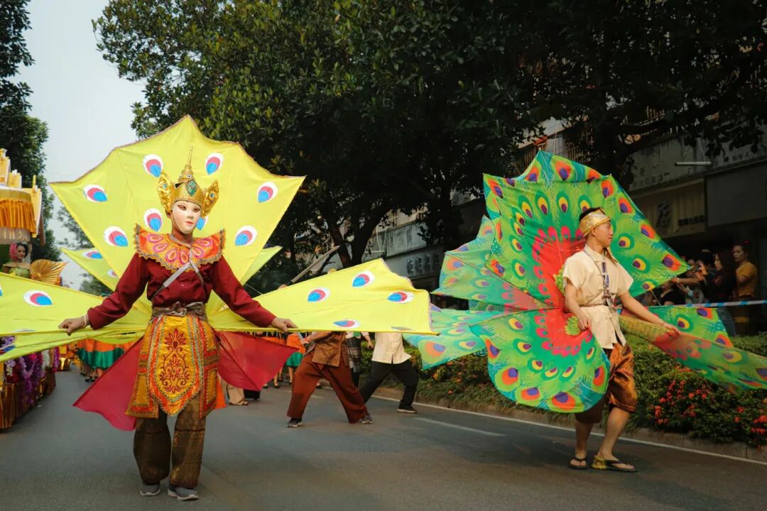 孔雀舞,是西双版纳傣族人民最为喜爱的民间传统舞蹈之一,傣语称作“凡糯勇”或“凡南诺”。孔雀舞起源甚早、分布广泛,在云南省西双版纳州、德宏州、普洱市、红河州、保山市等地傣族聚居区域均有流传,各个地方的孔雀舞在道具和表现形式上有着各区域傣族独具的风格。