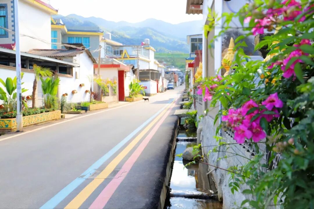 与沿路墙体的特色民族画相互隐掩