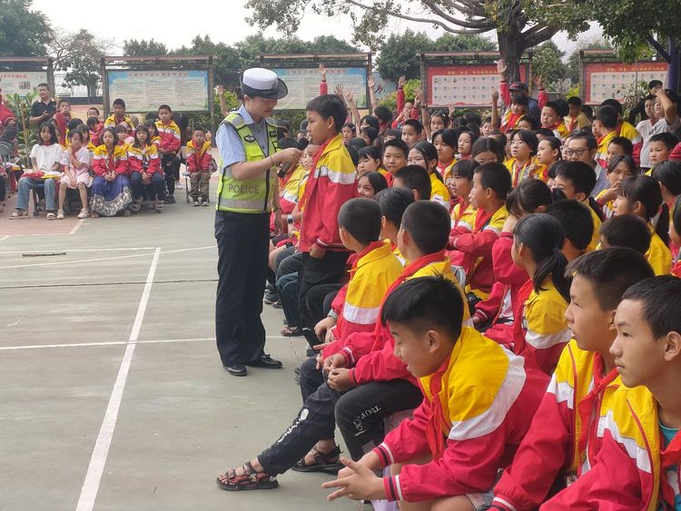 3月18日下午,元谋县公安局交警大队“巾帼办案先锋队”的警官们走进元谋县江边小学校园,为师生们带来了一堂以“安全是回家最近的路”为主题的道路交通安全知识宣讲活动。活动中,警官首先以通俗易懂的语言,结合现实生活,详细讲解了交通标志、红绿灯、交通信号、斑马线、安全乘车、安全走路等知识。随后,又邀请2名学生一起参与体验“随意横穿道路”“鬼探头”“闯红灯”等交通情景活动,让学生们在亲身体验和目睹不安全现象中意识到交通安全的重要性和在日常生活中遵守交通规则的必要性。此次交通安全知识宣讲活动,既充实了校园安全教育内容,也让学生对交通安全知识有了更加深刻的认识,进一步提高了遵守交通规则的自觉性,提升了学生的出行安全意识;对保障个人的交通安全、维护校内外交通安全秩序、争创平安校园起到了推动作用。