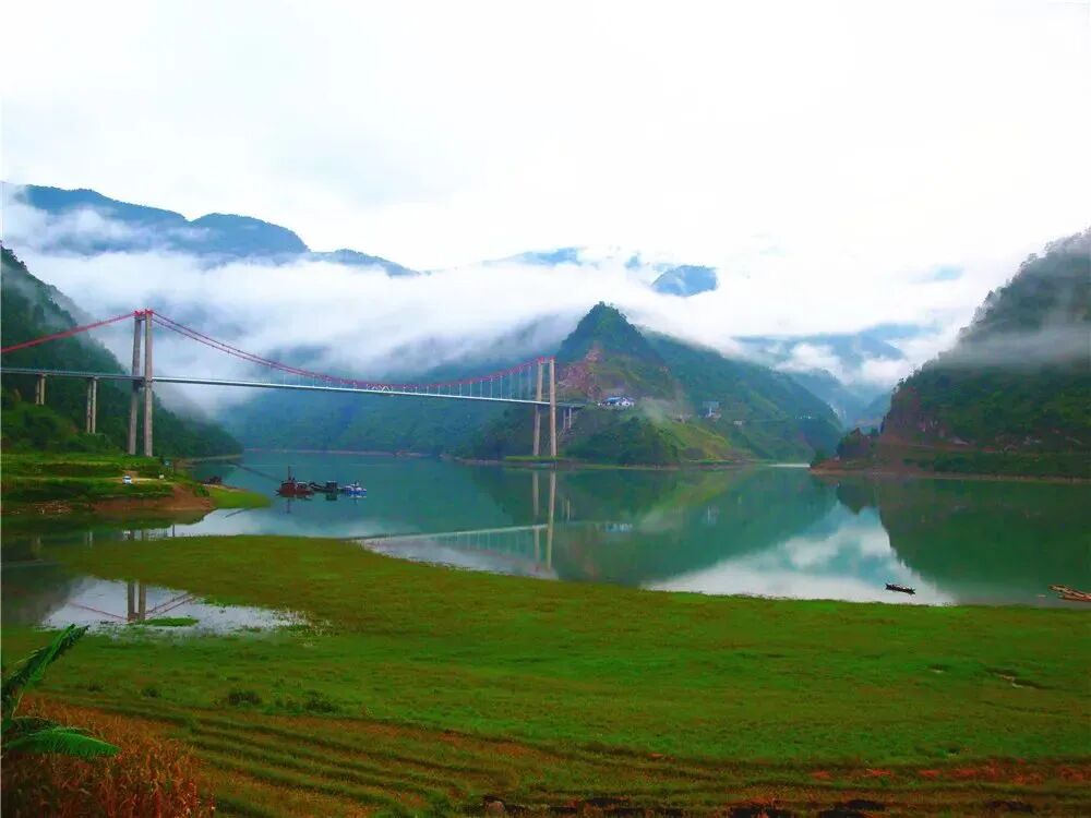 漫湾百里长湖青山簇簇绵延,湖水碧蓝浩渺,山水相映,水天一色,站立船头,便可领略“五百里滇池奔来眼底,又见三百里平湖出于高峡”的大美风光。荡舟湖中,舟移景换,颇有“分明看见青山顶,船在青山顶上行”的感觉。湖边连片的良田、花草、树木和悠然自得的牛羊,在蓝天碧水的映衬下,形成一首如诗如画、如梦如幻的田园生活乐章。