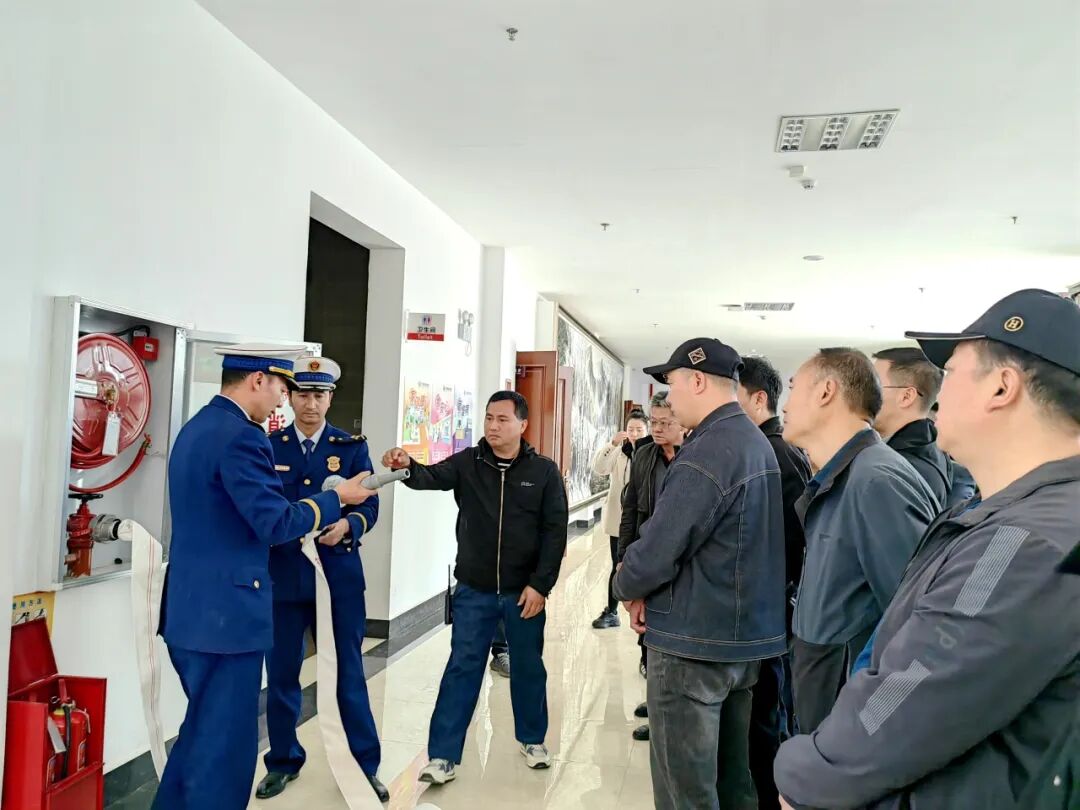 在现场教学环节,大理州消防救援支队综合指导科科长赵润六围绕灭火器的使用、消防水带操作、应急疏散通道、地下车库排烟系统等方面进行了实地教学,详细讲解注意事项及容易疏忽的问题,提升了大家的消防技能与应急处置能力。