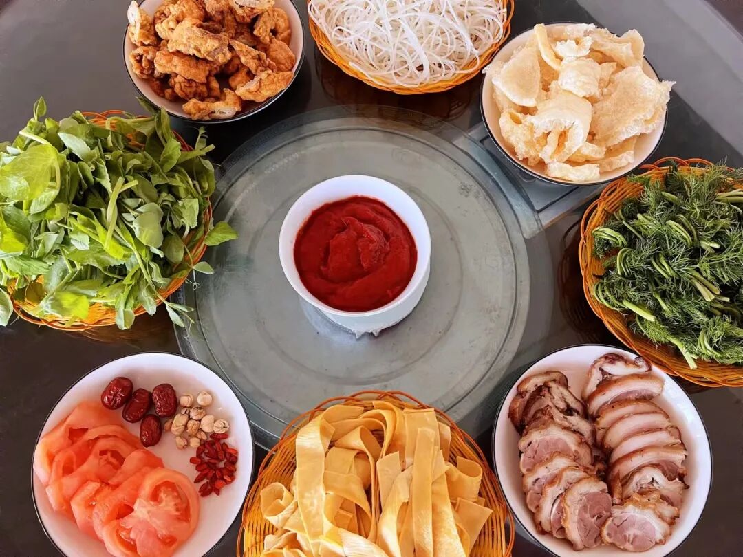 双柏独田酸汤脆皮猪脚采用地道的原生态食材,把独田风味展现得淋漓尽致。酸汤脆皮猪脚火锅以猪骨汤和秘制番茄酱打底熬煮,大枣、枸杞、白蔻各司其职,勾勒出鲜美酸爽的锅底。上桌前加入的本地番茄,低调而内敛,增香提味,自然成就了锅底的香气和厚重感。