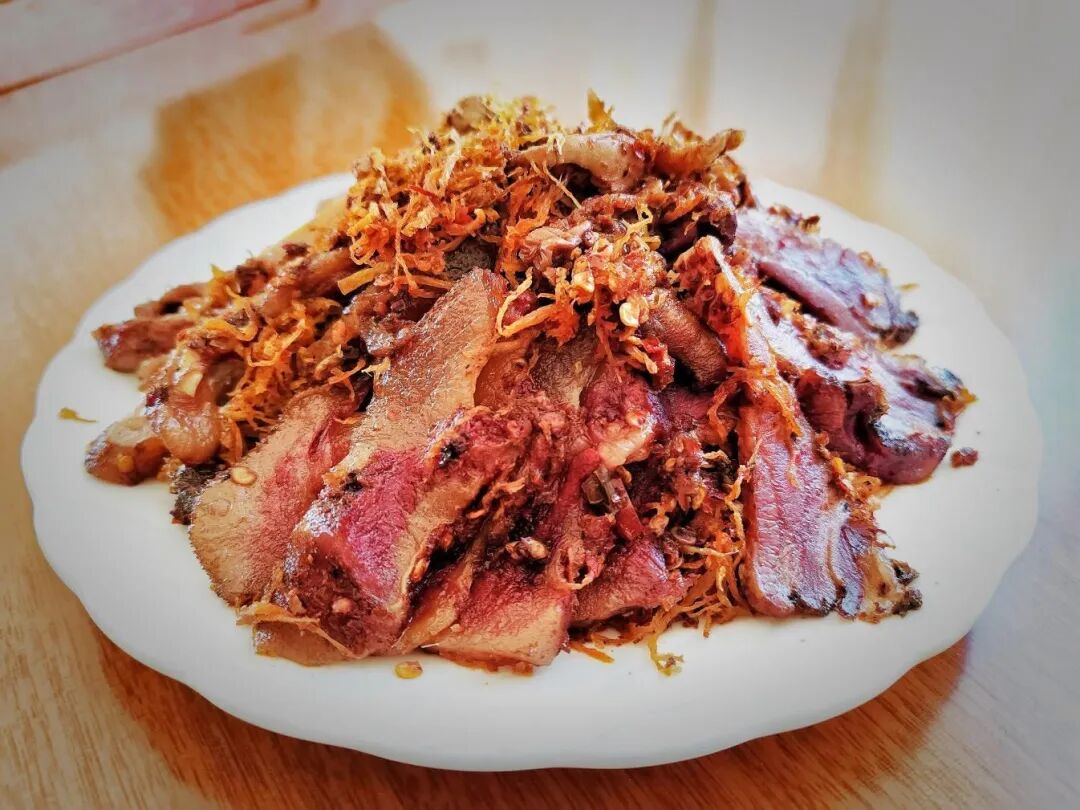 牟定戌街乡的萝卜丝腌猪头肉正如同戌街的干热河谷气候一样,热辣又酸爽,猪头肉吃起来肥而不腻,佐以酸酸辣辣的萝卜丝,吃着让人直呼过瘾。