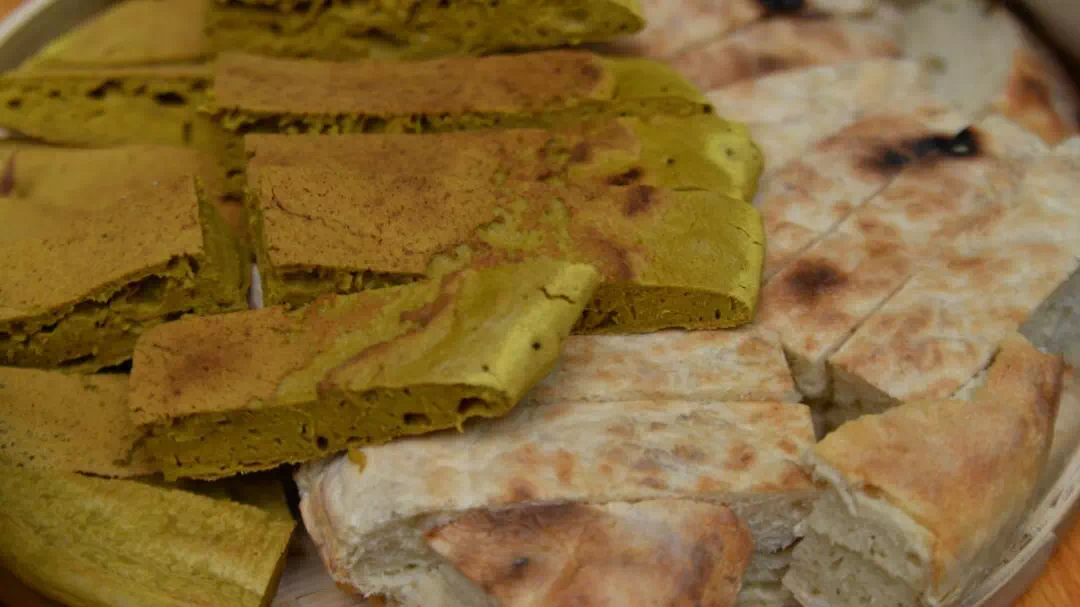 在楚雄广大彝族群众聚居区,苦荞粑粑蘸蜂蜜是一道流传了千年的传统美食。苦荞粑粑是彝族人民的传统美食,用苦荞粉制作而成,烤熟的苦荞饼呈金黄色,食用时用蜂蜜蘸食,味道清香,口感松软,甜中带着丝丝苦味,独具风味。