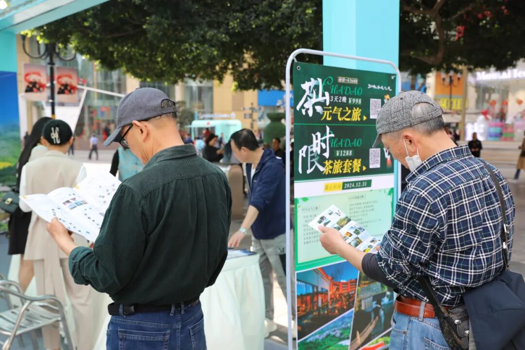 在为期三天的展会中,临沧文旅组团精心策划了一系列丰富多彩的展示活动。市文化旅游局在解放碑步行街设置4个标准展位,全天滚动播放临沧旅游宣传片,通过声情并茂的讲述和精美的画面,将临沧的美丽风景、民俗文化、特色美食等一一呈现给现场观众。同时,还设置临沧旅游咨询台,并对新推出的60余个招商项目,12条乡村旅游精品线路进行现场推介。游客来到现场工作人员即可提供详细的来临旅游线路规划、景点介绍、酒店预订等服务,让游客更加深入地了解临沧、感受临沧。