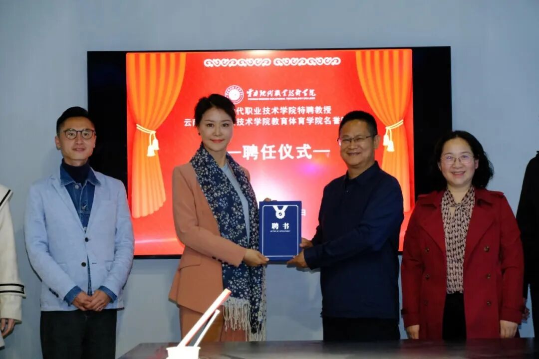 当天下午,王若舟代表学院给四川大学艺术学院教授、哲学博士、硕士研究生导师、国家一级演员、彝族女高音歌唱家宋阿依姆颁发了聘书,聘任她为学院特聘教授、二级学院教育体育学院名誉院长。