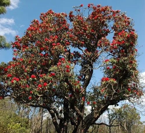 现正值四月初,阿朵所大雪山的马缨花开了。若有闲暇,你也快来看看吧!松树林、木剁房、黄犬、野草以及新鲜的空气都让人感到十分的亲切。从石板箐村子大约走过五公里左右的山路,就能看到遍山的马缨花。火红的花瓣一片挨着一片,夹杂在青松林中,红绿相衬,连地上也铺满了落英,让人眼前豁然一亮。红艳秀气的美常如彝族酒歌中所唱的,四月马缨红,八月桂花开……