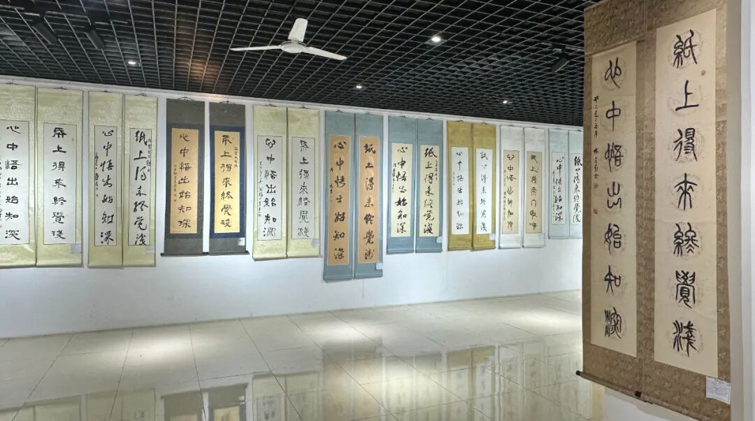 展览展出了108幅张贤先生历经20多年向海内外100余位书画名家征集的“纸上得来终觉浅,心中悟出始知深”这一对联内容书法精品。通过百幅对联“纸上得来终觉浅,心中悟出始知深” 书法作品的展示与交流,呈现出众多书画名家的书法技艺与涵养,以优秀的书法作品启迪观者对学习和工作的体悟。