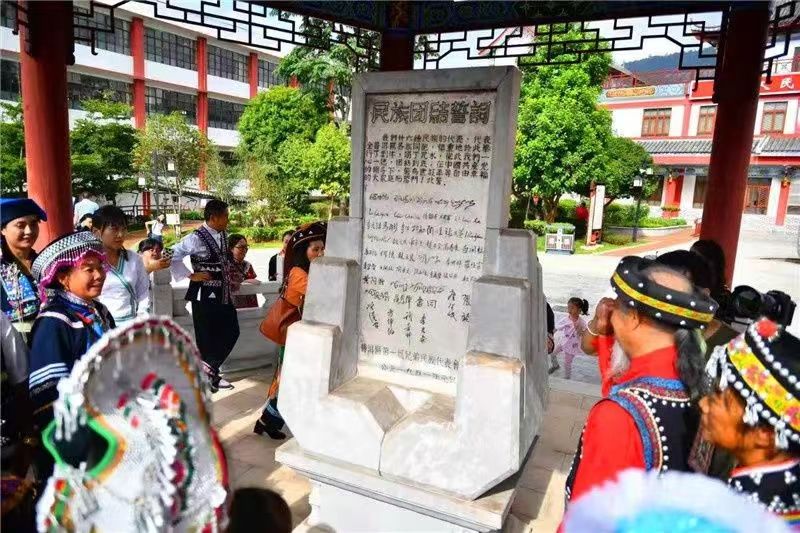 普洱民族团结园,园内立有著名的“普洱民族团结誓词碑”,誓词碑是一块青石质碑,高1.42米,宽0.65米,厚0.12米。碑名以阳刻形式呈现,而碑文则采用阴刻楷书。这座石碑于2006年5月被列入第六批全国重点文物保护单位,成为普洱地区乃至全国民族团结的重要历史遗迹。