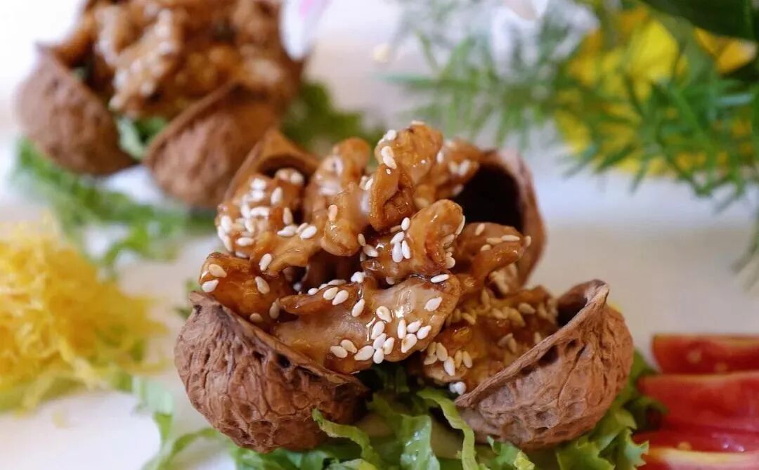 核桃美食突出大姚核桃壳薄、肉白、含脂量低、蛋白质高等优点,用核桃入菜,充分展现它的价值和各种功效,更能体现和满足现代人的就餐营养需求和食补食疗的养生之道。一道道别出心裁,造型美观,口味独特的核桃菜肴,让食客们在美味中吃出健康来,展示大姚核桃美食的风采。