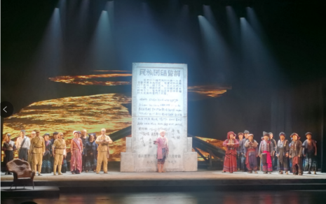 对民族史实的真实再现,透过符号化装饰化的民族元素,在编剧聚焦民族团结这一永恒主题的文学本之上,导演独到的打捞能力和敏锐的独到的慧眼,让我们看到了根植于心,文化底蕴厚重的舞台语汇和意向呈现。