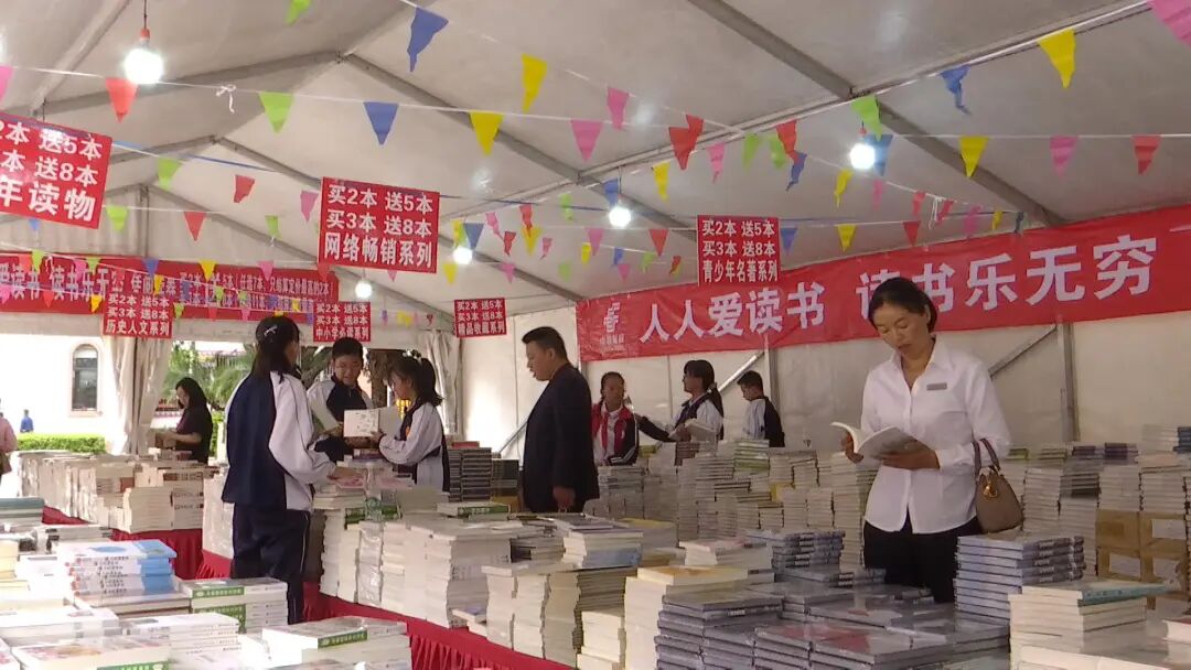 前来参加启动活动的永仁一中学生文彦蘅拿着爱心企业捐赠的价值200元的购书券,和同学们一起到书展上开心地选书。说起读书,文彦蘅很有感触。