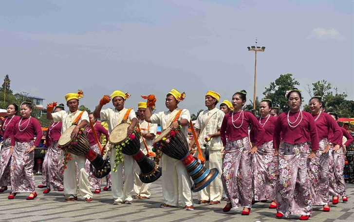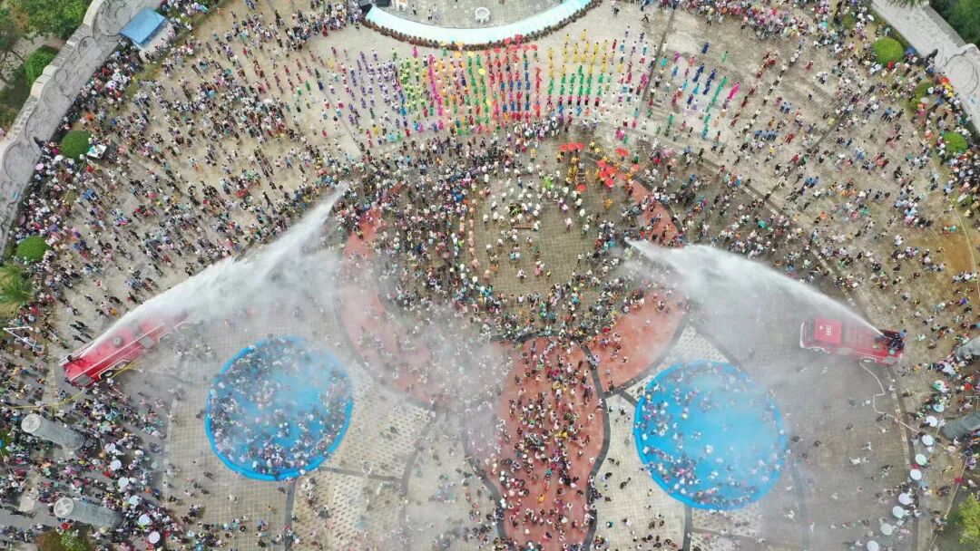 4月14日双江拉祜族佤族布朗族傣族自治县举办2024年度泼水节万人嘎秧舞表演活动,近万名各族同胞共同起舞共庆傣历新年。傣族姑娘们身着艳丽的民族服装翩翩起舞,泼水舞、摆手舞、孔雀舞等舞蹈轮番上演。表演吸引了众多市民和外来游客观看,大家在表演结束后也加入到嘎秧舞队伍中。队伍从内到外围成一个个圆,寓意各族人民一起画好共同团结奋斗同心圆,绘就共同繁荣发展新画卷。