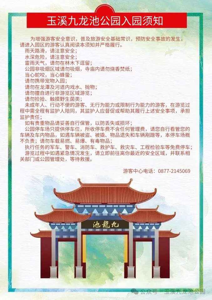 关于玉溪九龙池公园免费开放的公告