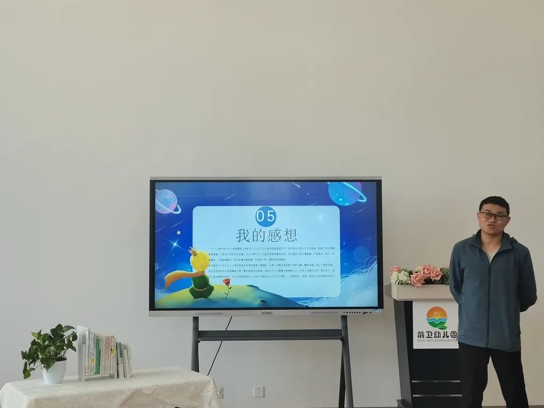 读一本好书,如交一位“益友”。老师们交流的书籍种类丰富,有指导工作的专业理论书籍,如:《幼儿园科学领域教育精要—关键经验活动指导》《幼儿园班级管理技巧150》等;有鼓舞人心的励志书籍,如:《于生活像极了生活》《做温暖的教育者》《非暴力沟通》;有风靡全球的文学作品,如《小王子》《活着》等。每一本书都是老师们阅读后精心挑选的。老师们从书籍简介、好句分享、阅读感悟等方面进行交流,从教师的交流中可以感受到,读一本好书就像交了一位“益友”,在灵动跳跃的文字里,它可以给你启示、给你启发、给你引导,可以拂去心上之尘埃,可以温暖心间之落寞。
