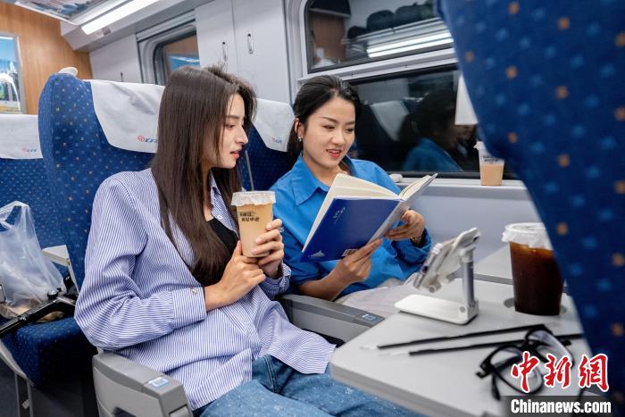 图为旅客在书香列车上阅读书籍。陈畅 摄