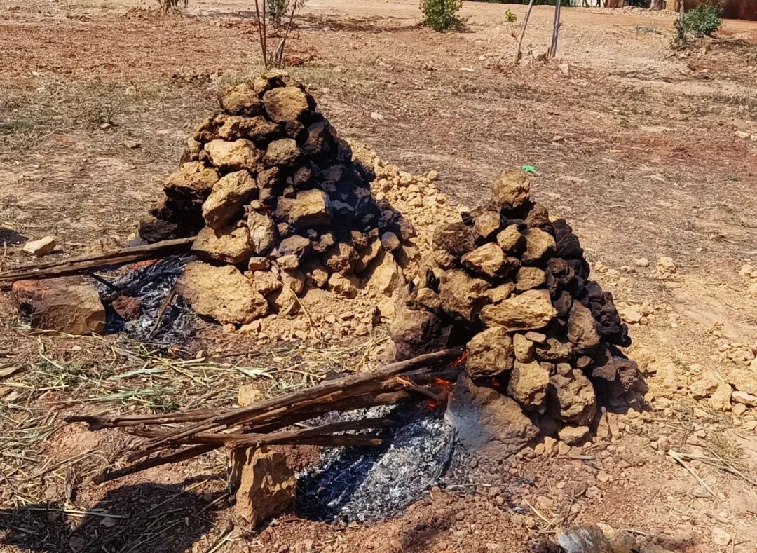 窑体搭好后,将干柴禾或秸秆点燃放进窑门,不断添火,直到把窑体烧红变黑,就可以准备放入食材了。
