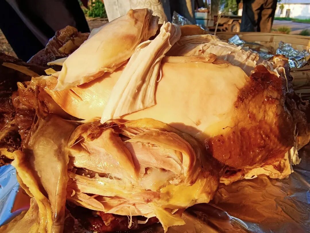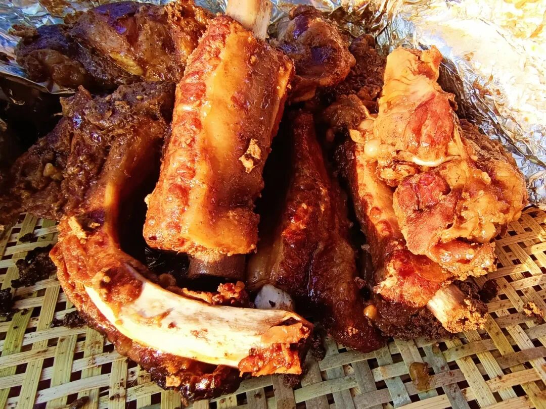 随后,邢志国和同伴们又刨开另一窑荤菜,当打开锡纸时,焦黄油亮的鸡肉、麻辣鲜香的鱼肉、肥瘦相间的排骨飘出迷人的香气,让人忍不住咽口水。