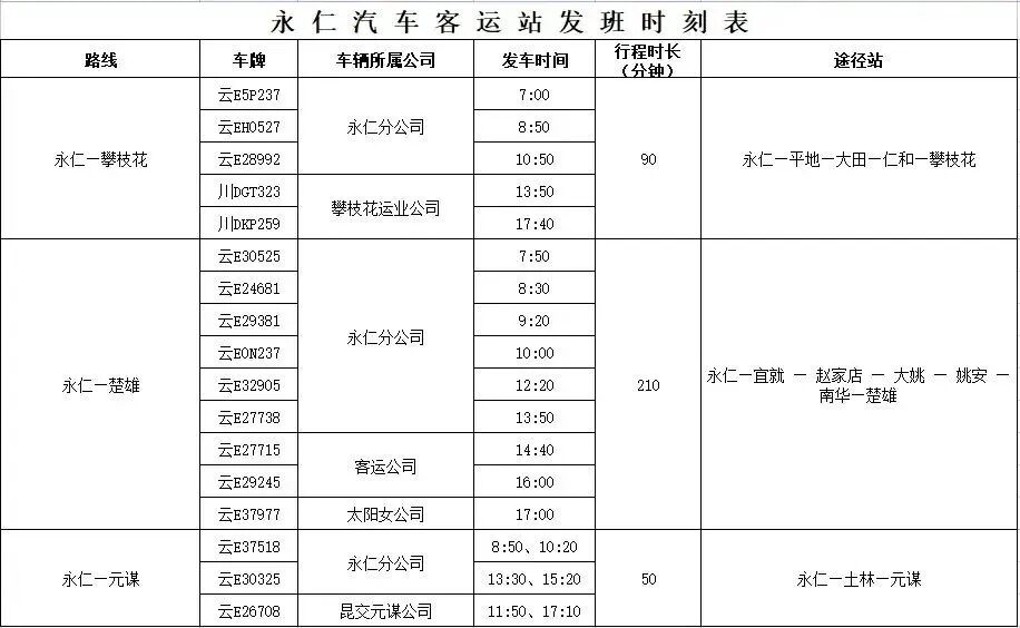 3、永仁汽车客运站发班时刻表