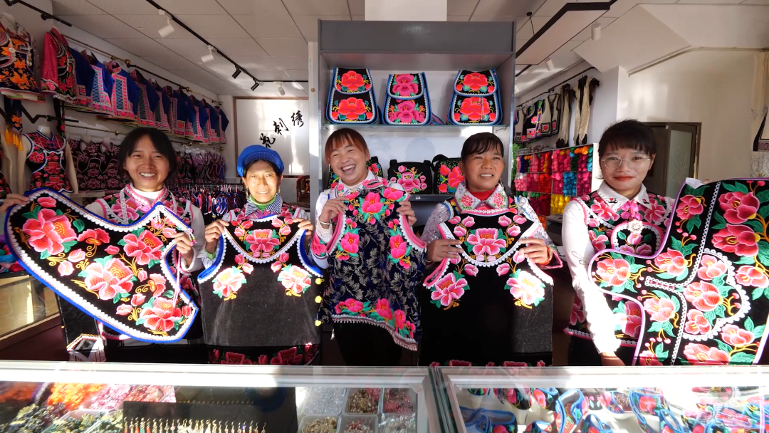 (绣娘展示彝绣作品 楚雄州委宣传部 供图)
