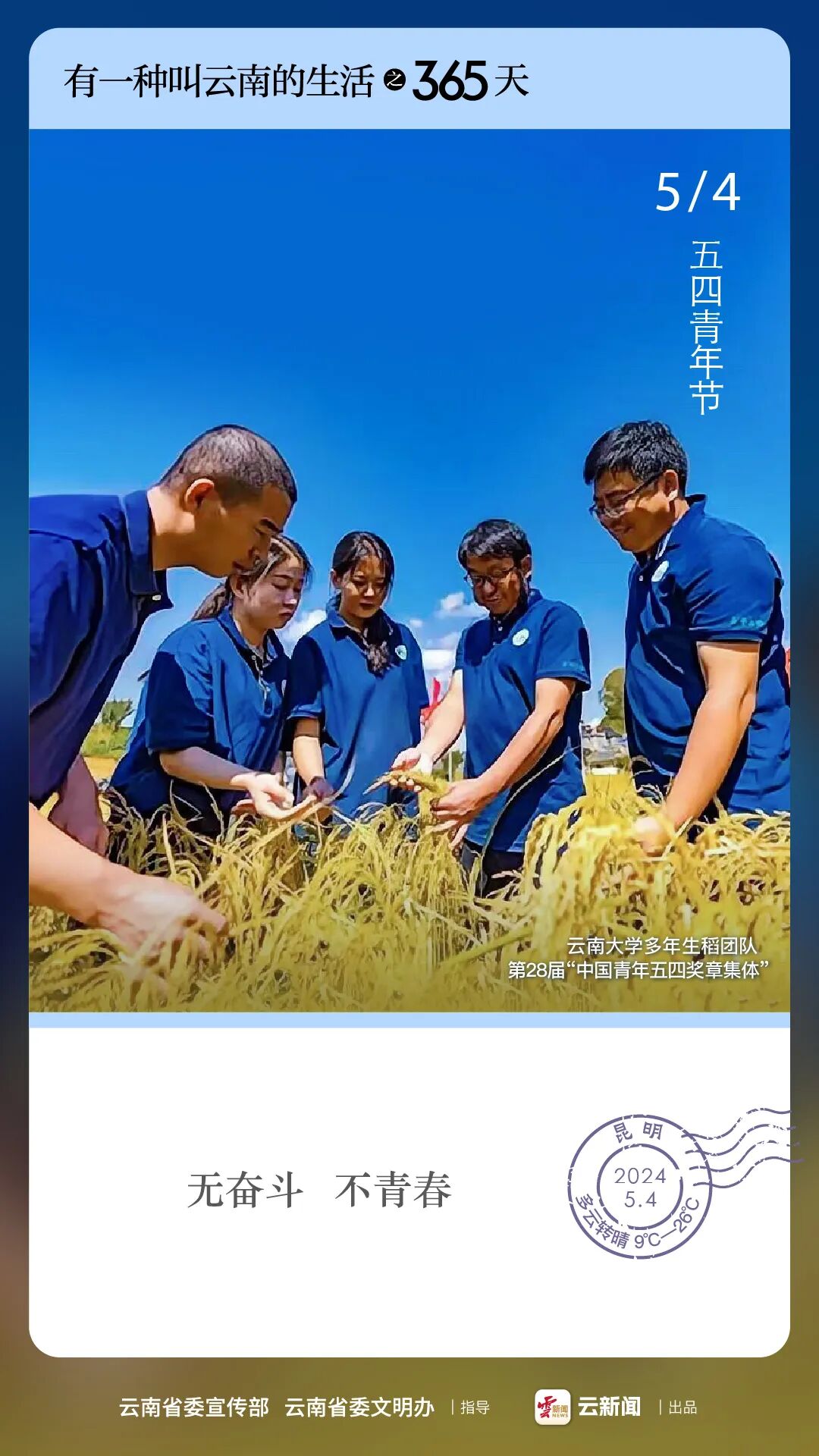 近日,共青团中央、全国青联决定,授予王传超等30名同志第28届“中国青年五四奖章”,授予20个青年集体第28届“中国青年五四奖章集体”。其中,云南大学多年生稻团队荣获第28届“中国青年五四奖章集体”。