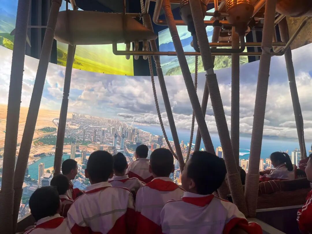 (在飞览天下·新疆会客厅场馆内,观众正在体验梦幻热气球项目。新疆飞览天下文化发展有限公司供图)
