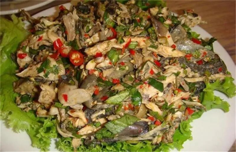 双江茶餐、香茅草烤鱼、佤族鸡肉烂饭、臭豆腐煮鱼、纸包鱼、虹鳟鱼、舂鸡脚、舂牛干巴、烤崩;