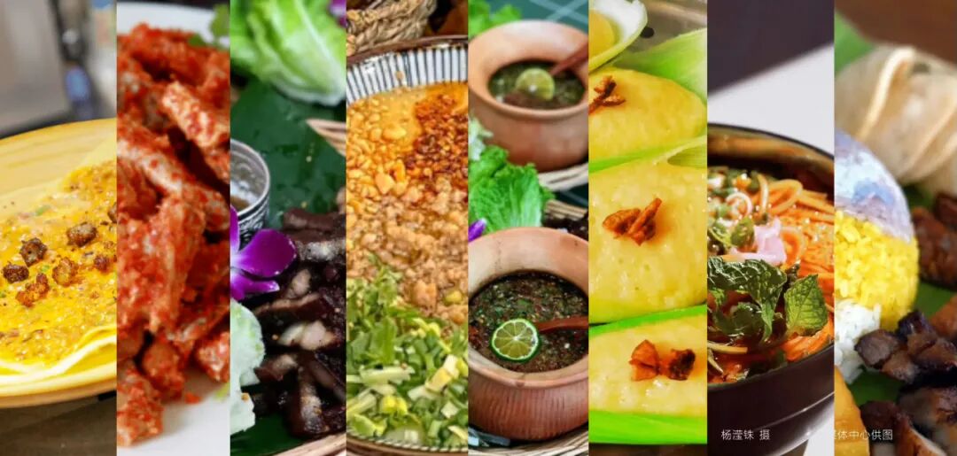 1.五花肉蘸腌菜膏 2.蓝莓山药 3.菠萝饭 4.泰式火锅 5.傣味炒鱼 6.傣味煮鸡 7.柠檬鸡 8.串串虾 9.藤椒茄子 10.铁板腰花 11.金丝香芋卷