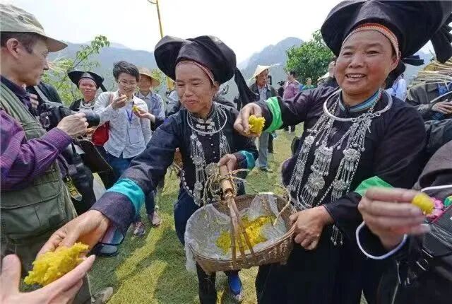 每年农历二月初一祭太阳日,村里人早上蒸制金黄色的糯米饭作供品。中午,18岁以上的女性到村前小河沐浴净身后,穿上传统民族盛装。下午,女人们爬到太阳山顶,唱诵《祭祀太阳古歌》,然后分享供品。