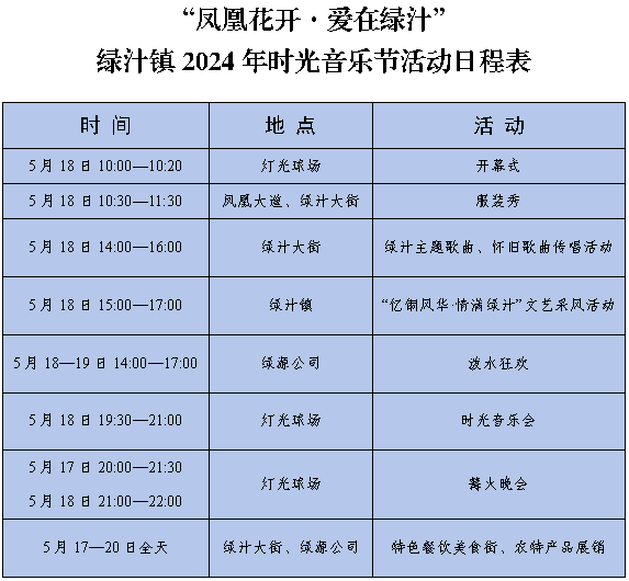 精彩多多,乐趣多多。5月17日—20日,快和家人、朋友共赴“凤凰花开·爱在绿汁”绿汁镇2024年时光音乐节之约吧!