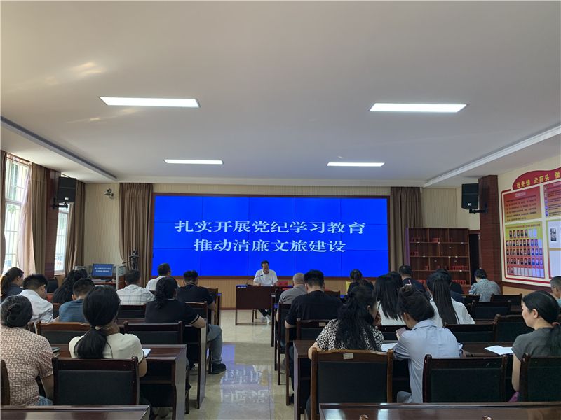 讲好一次廉政党课。为深入开展党纪学习教育,市文化和旅游局党组书记、局长肖会强同志为市直文旅系统党员干部讲授党纪学习教育专题党课,要求市直文旅系统党员领导干部“以上率下”,党员干部知纪明纪、知止行止、知行合一,学在经常、融入日常,始终做忠诚干净担当的文旅人。