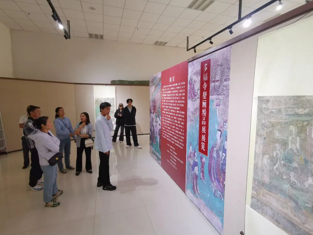 走进多福寺壁画精品展的展厅,仿佛穿越了时空的隧道,置身于一个充满神秘与庄严的佛教世界。壁画中的释迦牟尼形象栩栩如生,面带微笑,眼神深邃,仿佛在向观众诉说着他的传奇故事。而壁画中的其他人物形象和场景也栩栩如生,无论是宫殿建筑的细节还是人物服饰的描绘,都展现了明代壁画艺术的精湛技艺和独特魅力。在展览期间,市文物管理所邀请了专家学者进行现场讲解和导览,旨在让观众在欣赏艺术的同时,也能够深入了解更多的历史和文化知识。
