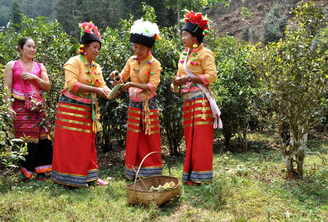 德昂族酸茶分食用茶和饮用茶两种,食用茶一般当作菜来食用,是难得的德昂美食;饮用茶酸涩回甘,其汤色金黄透亮,年份久的有橄榄香、桂花香、奶香等。