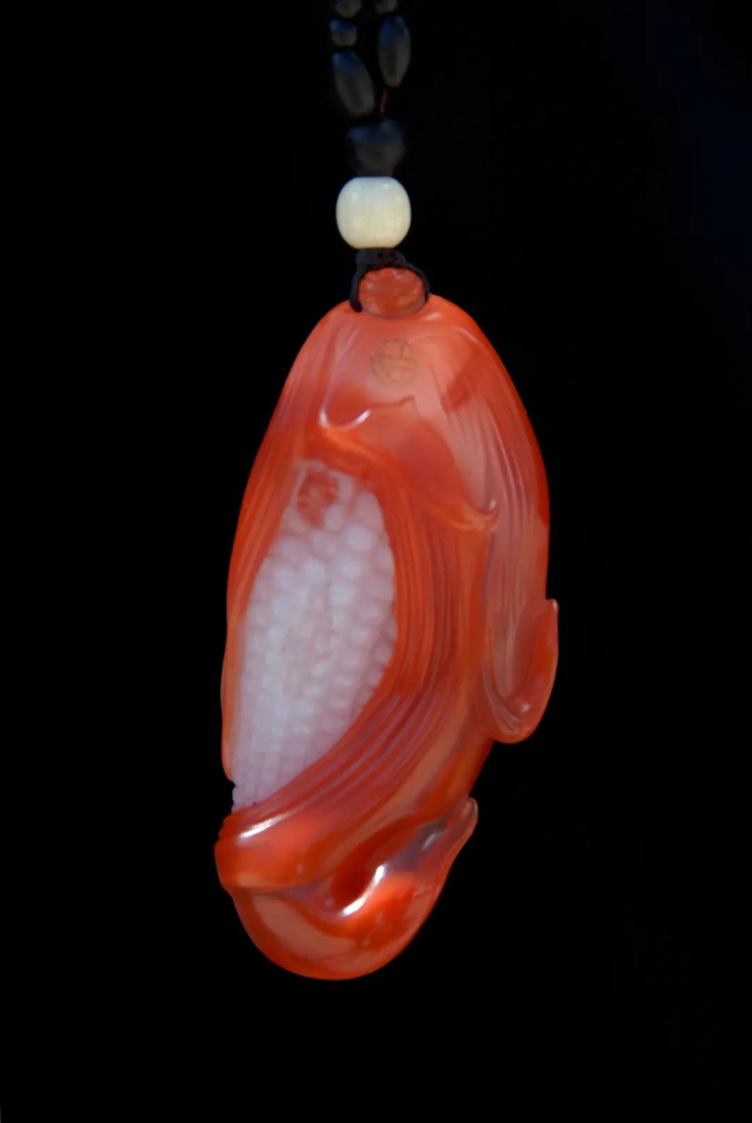 “玉不琢不成器。”艺术设计和雕刻工艺的好坏,同样是南红玛瑙审美价值与经济价值的重要标志。南红玛瑙虽然质地坚硬细腻、色彩厚重,但性脆多裂,不易雕刻,要雕刻出精美的上乘作品,在设计与加工方面,需要经验老道、技术精湛者方能为之。较小的南红材料一般多用于制作手串、珠子或挂饰等小件,如清南红年年有余童子坠、清南红童子如意坠等。大一点的材料,则会雕刻成工艺品摆件,如明南红雕螭龙带钩、清南红雕鹿鹤同春笔筒等传世精品。