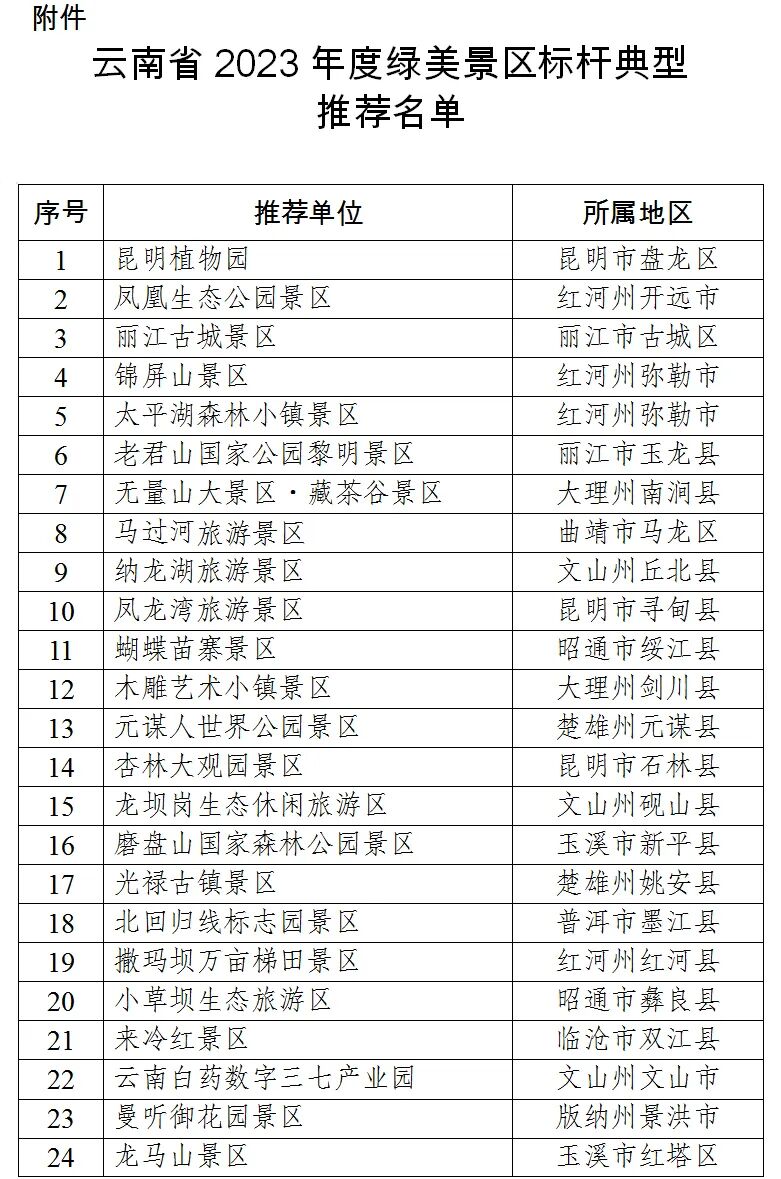 附件:云南省2023年度绿美景区标杆典型推荐名单