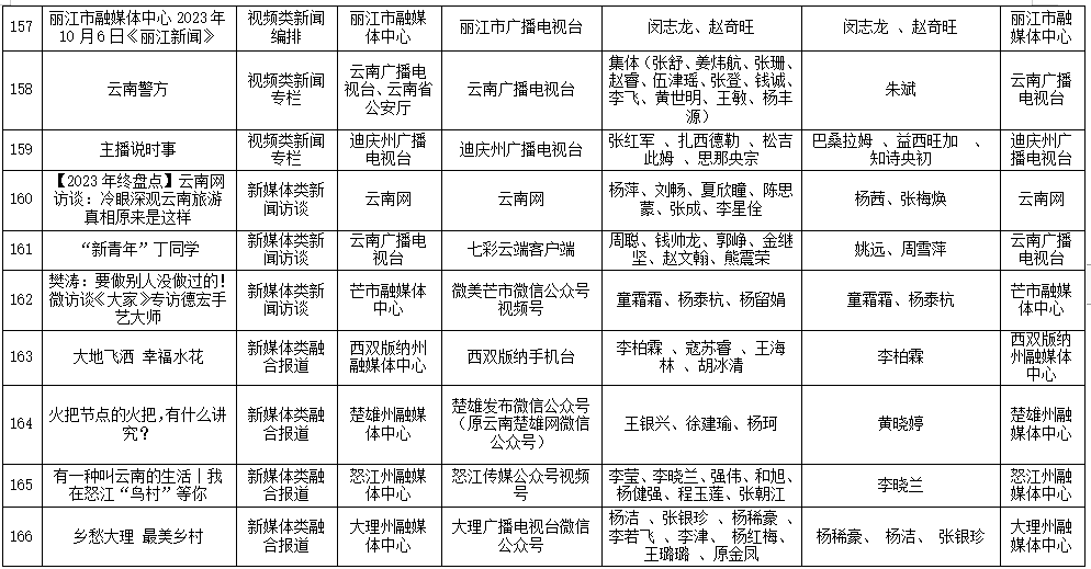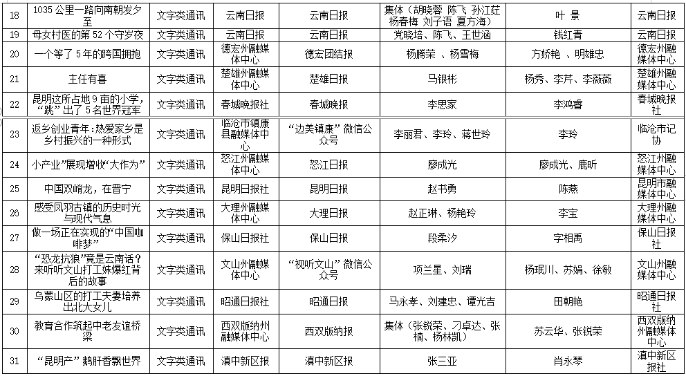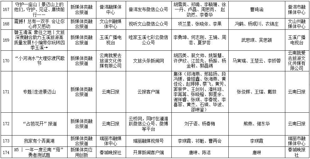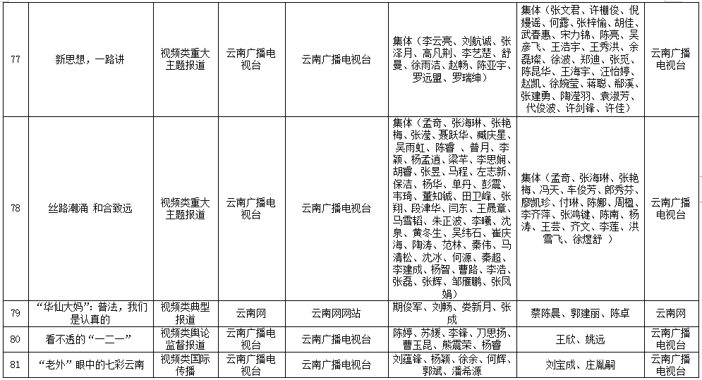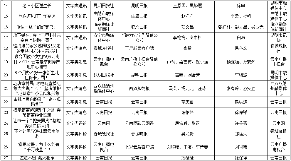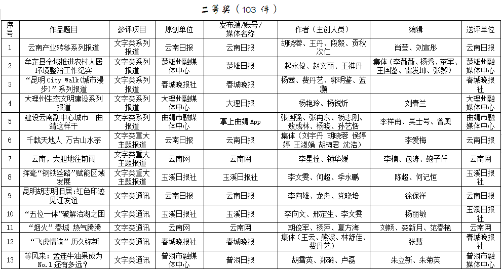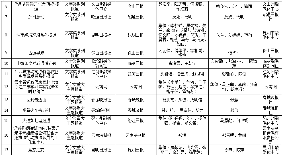根据《评选办法》规定,现将评选结果在云南网、云南记协网进行为期5个工作日的公示,欢迎社会各界监督、评议。云南记协评选办公室将认真受理,对有关举报进行认真核查。