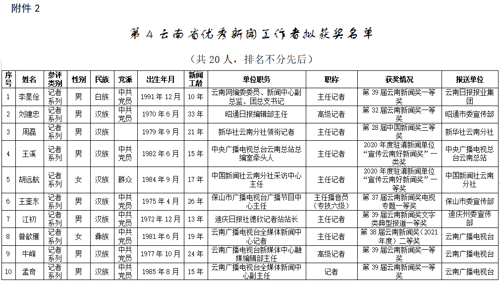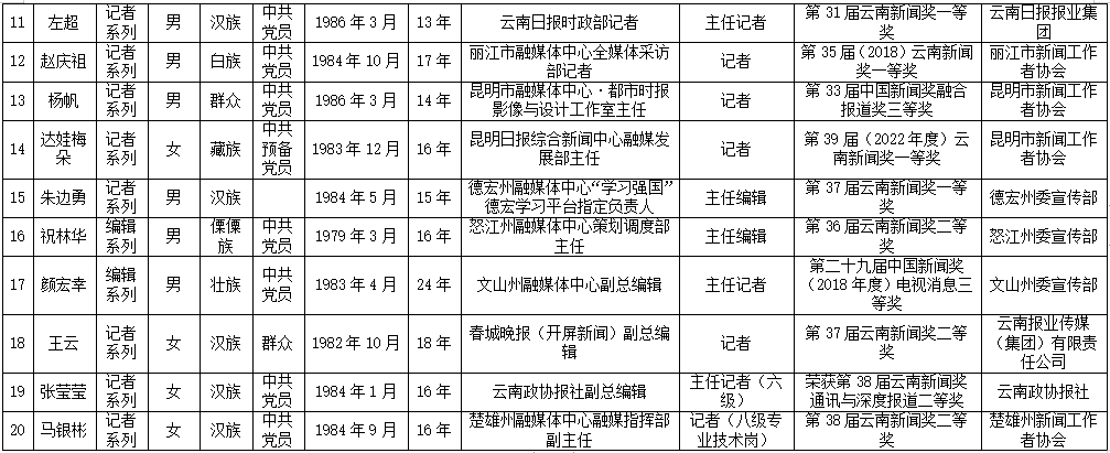 关于公示第40届云南新闻奖和第4届云南省优秀新闻工作者