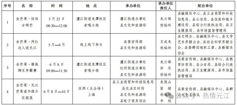 内容:邀请干热河谷流域县区主管部门和龙头企业领导、专家和技术人员,共同探讨芒果产业联盟发展。邀请省内外专家和渠道商等借助当地芒果文化优势,把产业发展与文化保护、乡村振兴有机结合,助力元江打造“芒果+文化”“芒果+休闲”“芒果+工业”等特色旅游景观,促进一、二、三产业融合发展。进行元江芒果展示秀、推介优质特色品种、战略合作签约等,持续强化元江芒果区域公用品牌形象和行业影响力。