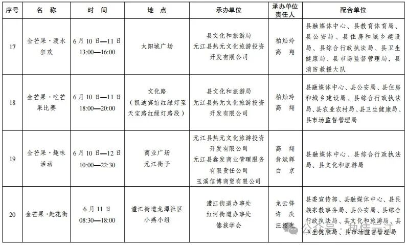 地点:澧江街道老虎箐村、坝洪小组,红河街道打炭村,甘庄街道芒果产业园,良丰庄园,禾润采摘园