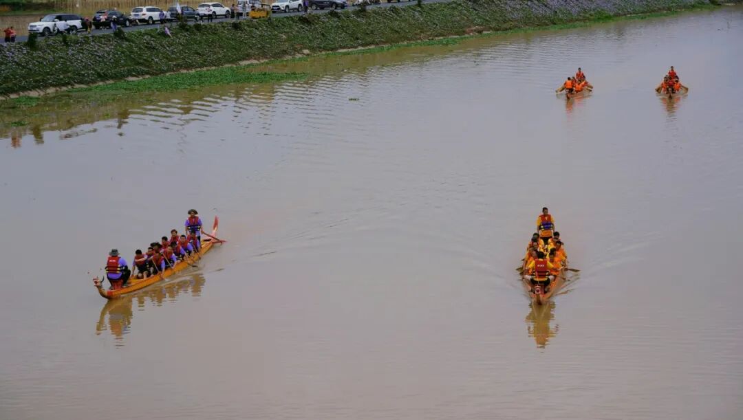本次比赛共有十二支龙舟队参赛,分别来自曲江大河沿线村委会(社区)以及镇机关,最终闫家坡代表队用时最少摘得桂冠。