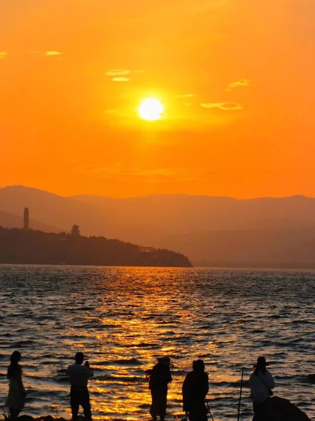 温暖的霞光铺满洱海