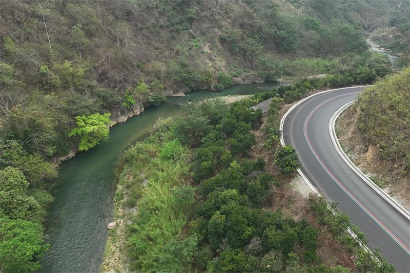 不是只有景点才叫风景,路本身就是最美的风景。屏边美丽公路很平,沿着蜿蜒的南溪河而行,沿途风光秀美。一边是河水,一边是山野,碧水蓝天,层林尽染,十分诱人。