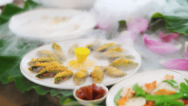 荷叶春卷、荷花酥、香酥藕盒、银耳莲子粥……可以说荷花的每一个部位都是珍贵的食材,每一道菜都融入了荷的元素,在保留了原有配料味道的基础上,又增添了荷叶淡淡的清香,外焦里嫩、入口即化,引得食客们赞不绝口。