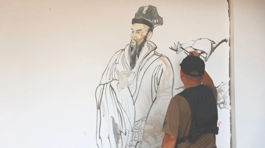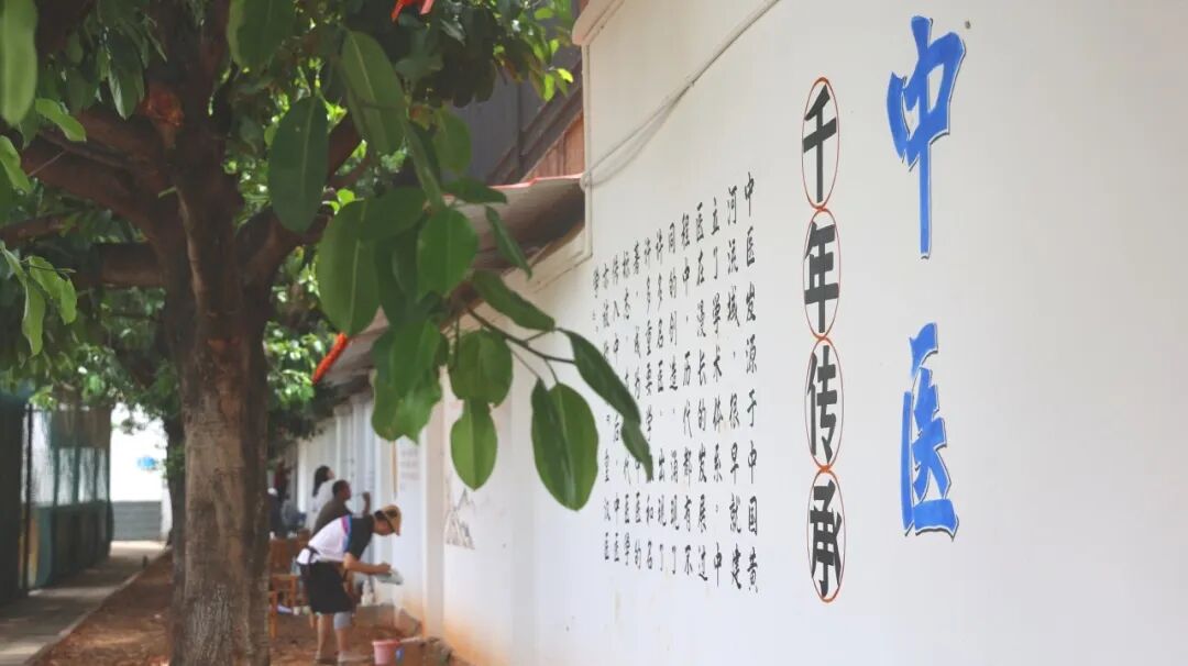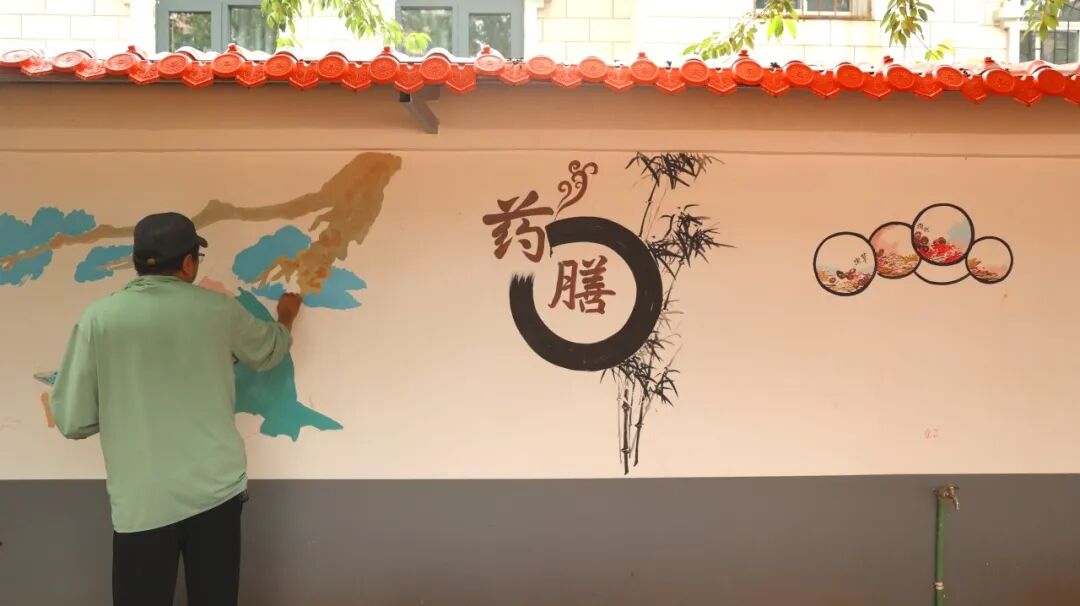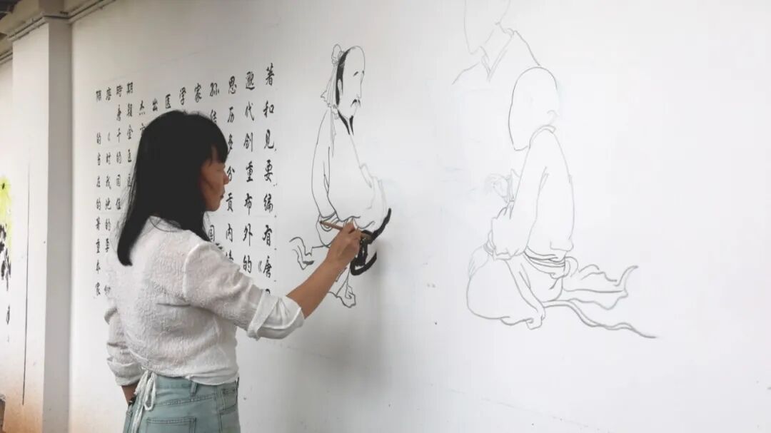 以“传承中医文化,弘扬国粹精神”为主题的墙绘创作