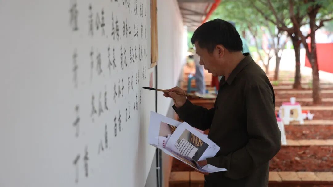 建水书画院特聘艺术家 王庆华:我非常荣幸能够参加这次政协书画院组织的特聘艺术家的活动,这次活动我们主要是为来薰小学的校园文化建设增加一些书画的元素,我们特聘艺术家的各位同行非常自豪、很高兴参加这次活动。