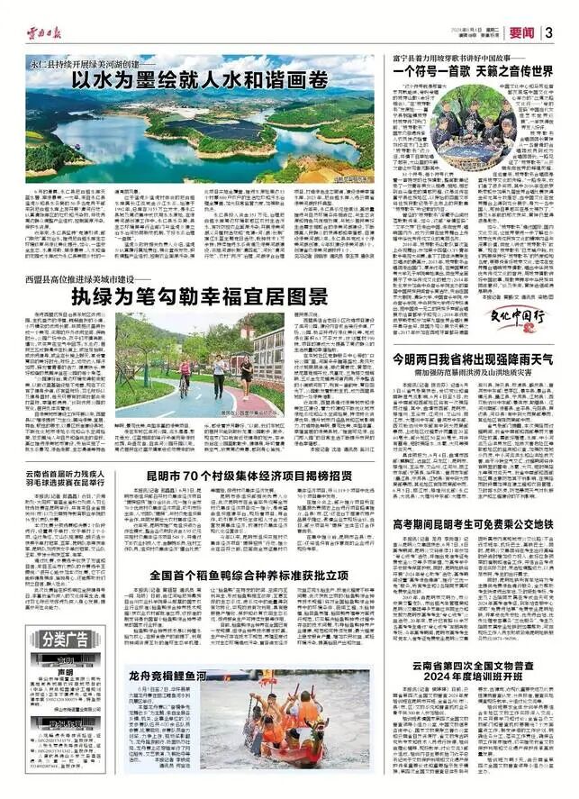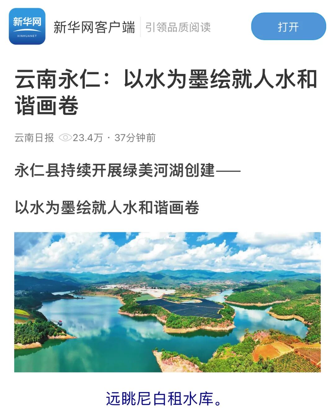 6月4日,新华网、《云南日报》点赞楚雄州永仁县坚持“党建引领、部门联动”高效治水,持续开展绿美河湖创建,推进尼白租水库生态环境修复与绿化美化提升。